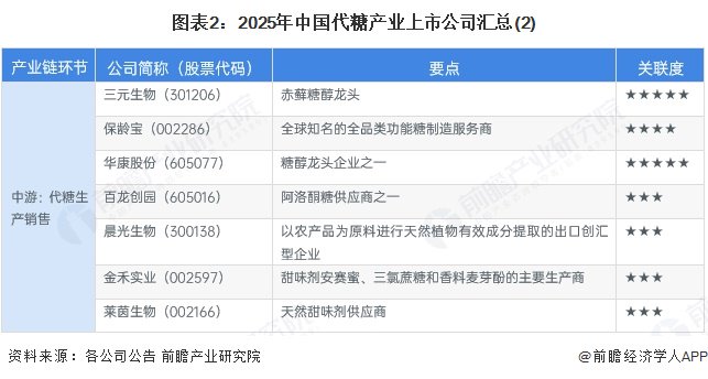 1、代糖行业上市公司汇总