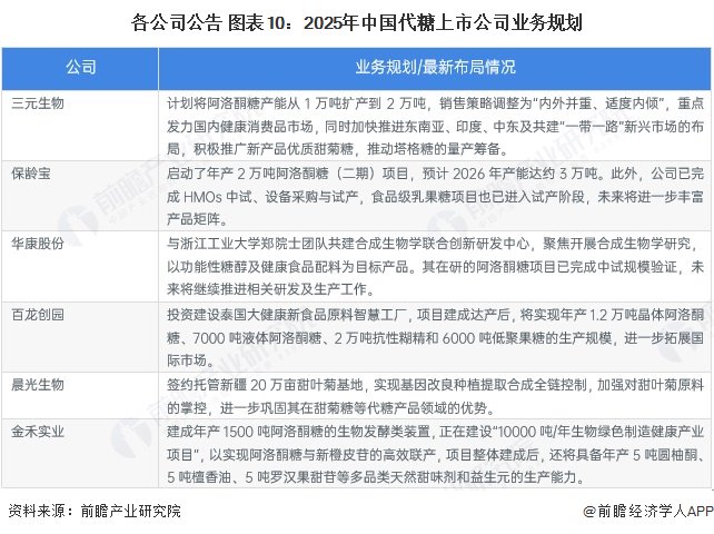 中国代糖企业业务规划的重点包括:扩大产能、研发新产品、积极进行市场开拓、优化产品工艺等。主要上市公司代糖业务规划汇总如下: