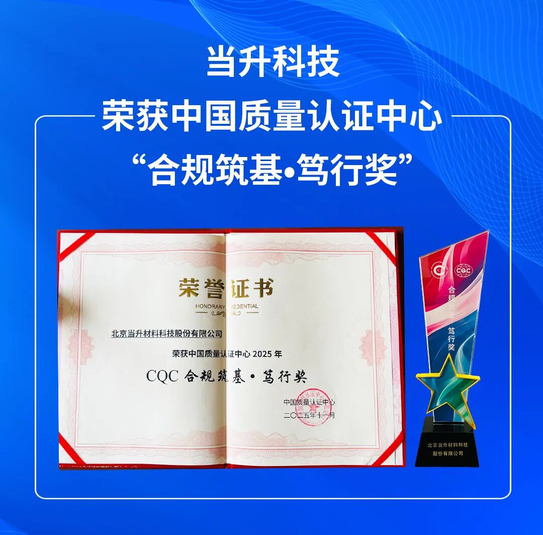 该奖项由国家级权威认证机构CQC面向全国客户筛选,旨在表彰在合规管理体系建设与运行、制度流程优化、合规文化培育及行业示范引领等方面表现卓越的企业。经严格评审,当升科技凭借系统化、可落地的合规管理实践与创新机制获此殊荣。