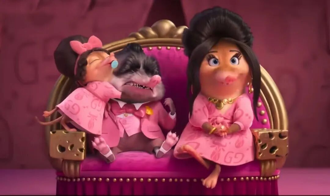 影片中,时尚女王露露一家换上新造型,开始运营一门时尚生意,粉红色工坊和造型中处处可见双G logo,令熟悉的观众立刻想到Gucci,更妙的是,那段大象精心制作手袋的幽默片段,利用体型差距强化了手袋工艺的精细。