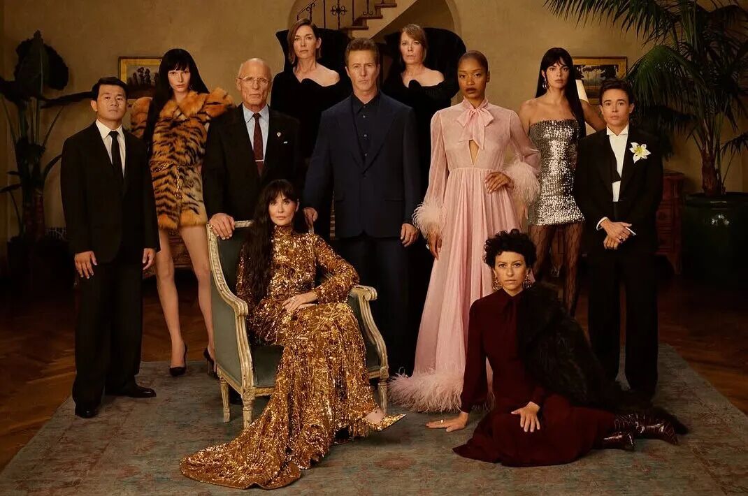在创意风格上,Demna的新系列从过去几年失败的极简主义风格试错,转向穿着皮草和精致套装的Gucci家族成员,重塑出张扬而充满戏剧性的意大利家族群像,与电影的影射情节形成了意外的共鸣。