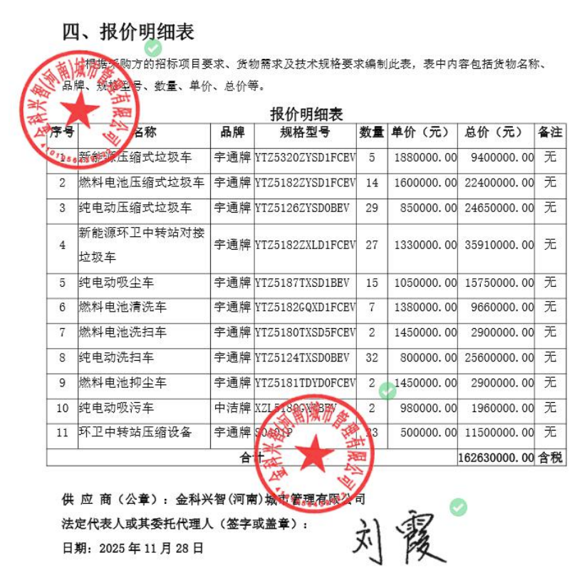 郑州市金水区政府采购网消息,12月1日,郑州市金水区城市管理局金水区环卫设施设备更新项目公布开标结果,郑州金水发展投资集团旗下金科兴智(河南)城市管理有限公司以16,263万元的报价中标,宇通重工成最大赢家。