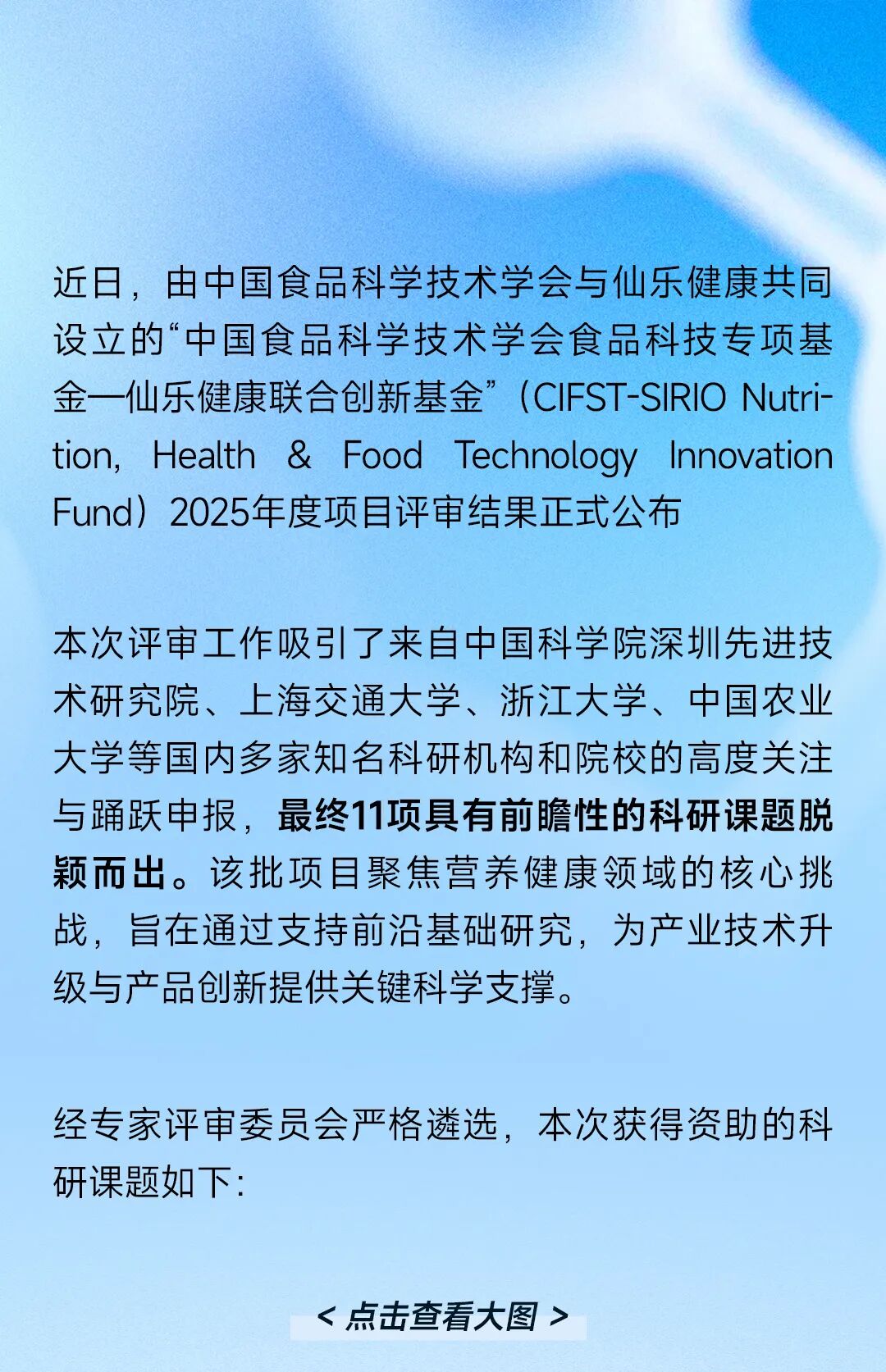 仙乐健康联合创新基金2025年度项目公示,前沿科研赋能产业未来