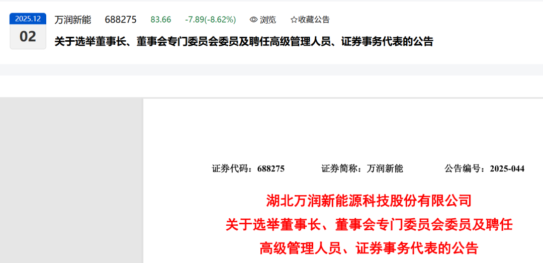 湖北万润新能源科技股份有限公司(以下简称“公司”)于2025年11月28 日召开职工代表大会选举产生了第三届董事会职工代表董事,与公司2025年第一次临时股东大会选举产生的5名非职工代表董事共同组成公司第三届董事会,公司第三届董事会董事将自2025年第一次临时股东大会审议通过之日起就任,任期三年。