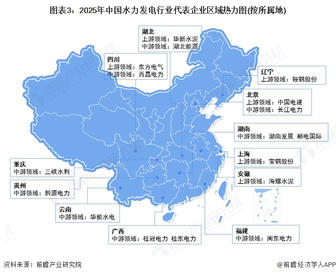 水力发电行业产业链区域热力地图:中游企业主要集中在中部和西南地区中国地势西高东低,河流众多、径流丰沛、落差巨大,蕴藏着非常丰富的水能资源。水力发电具有明显的区域性特征,主要聚集在水能资源较为丰富的地区。中国水能资源蕴藏最丰富的地区为西南地区,占全国水能蕴藏总量的70%,该板块包括云南,四川等地。从代表企业区域分布情况来看,水力发电产业链的中游企业也主要分布在中部和西南地区。