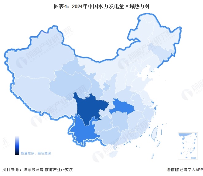 水力发电行业发电量热力分布情况:四川、云南、湖北处于领先地位