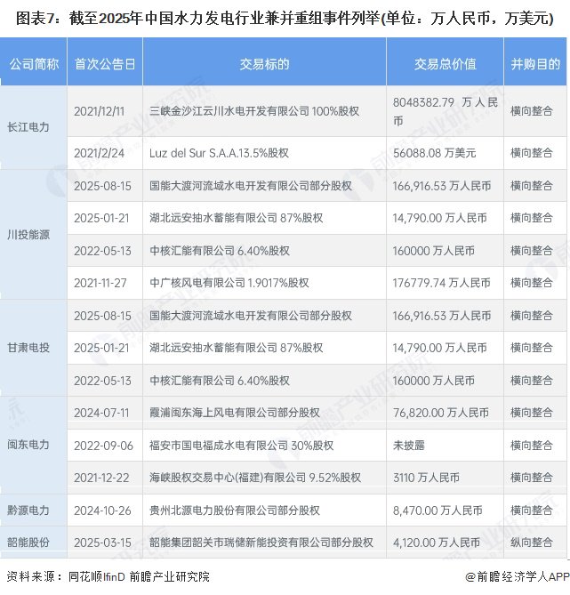 水力发电产业代表性企业兼并与重组动向:横向整合为主