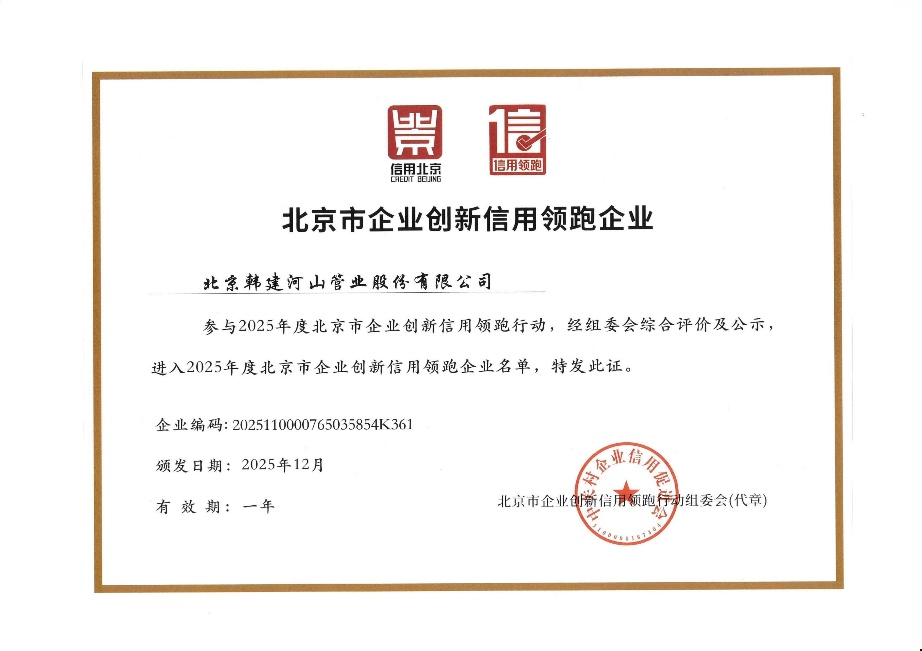 作为北京市企业创新信用领跑企业,韩建河山始终坚持以质量为保障,以诚信为基石,将技术创新作为企业发展核心,将诚信经营视作企业宝贵财富。此次入选,不仅是对韩建河山过往发展成果的权威认可,更是对公司积极践行社会责任、引领行业建设的高度肯定。