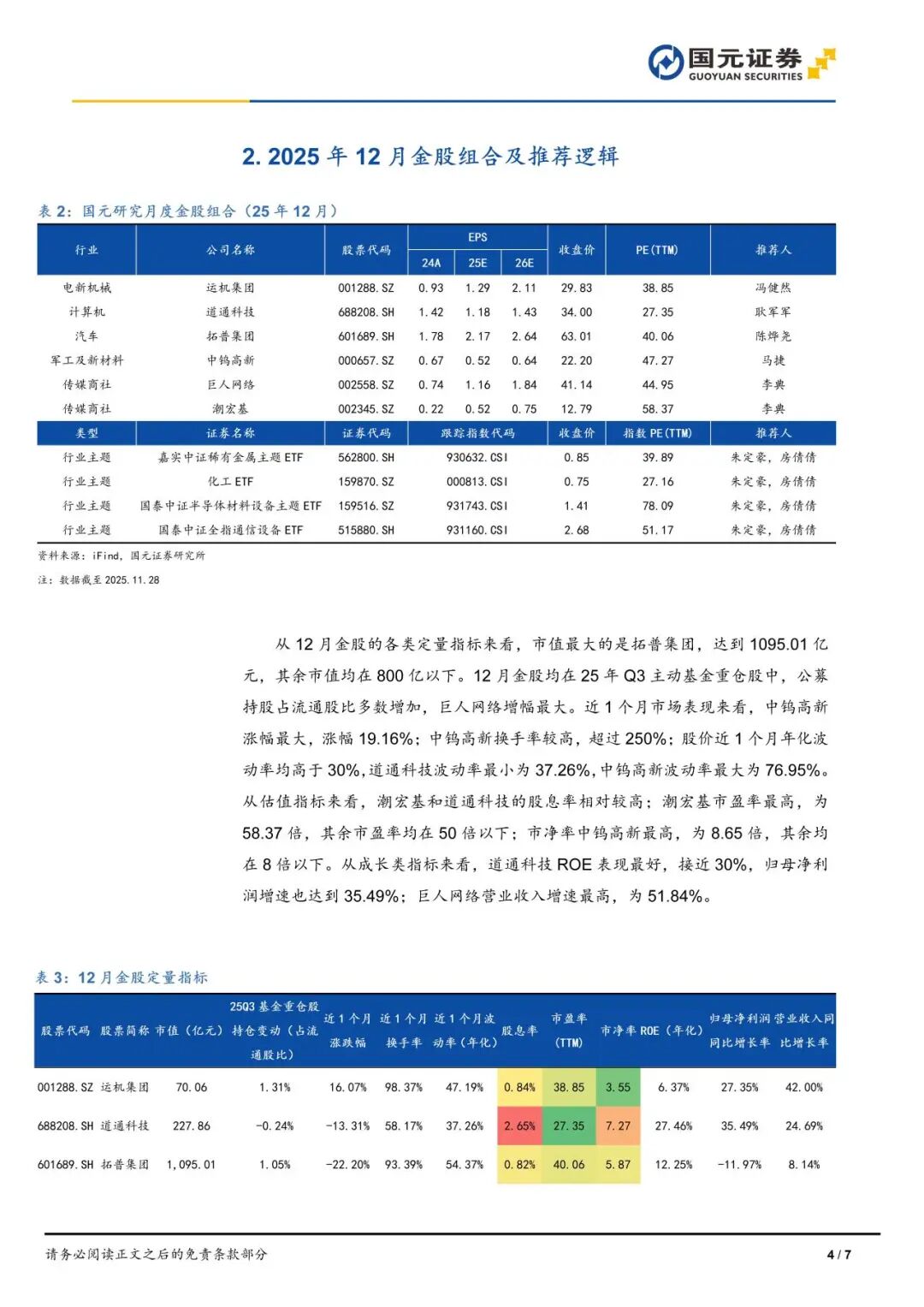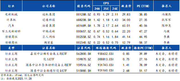 国元月度金股(2025年12月)