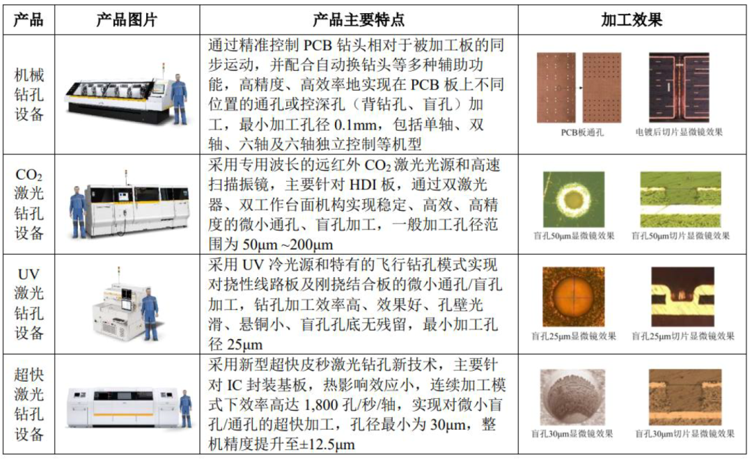 钻孔设备是实现多层板层间互连互通的核心工具,如同打通不同楼层的 “垂直通道”,其设备种类涵盖机械钻孔设备、CO₂激光钻孔设备、UV 激光钻孔设备、超快激光钻孔设备等,对应的特点及图示如下: