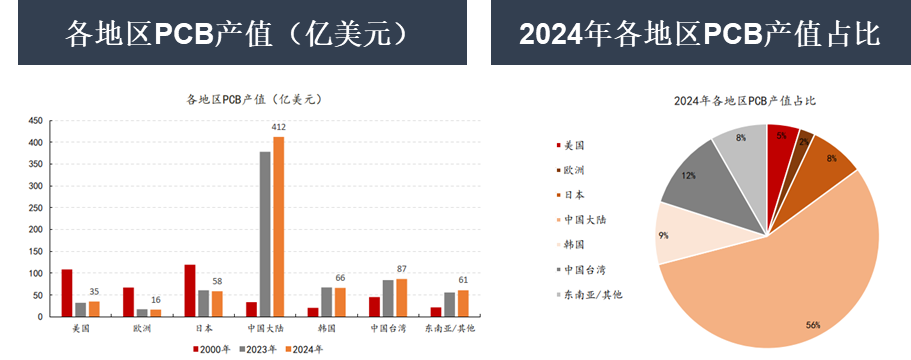 2024 年全球 PCB 总产值达到 736 亿美元,同比增长 5.8%,中国就像全球 PCB 产业的核心工厂,以 56% 的市场占比稳居全球最大生产基地地位。
