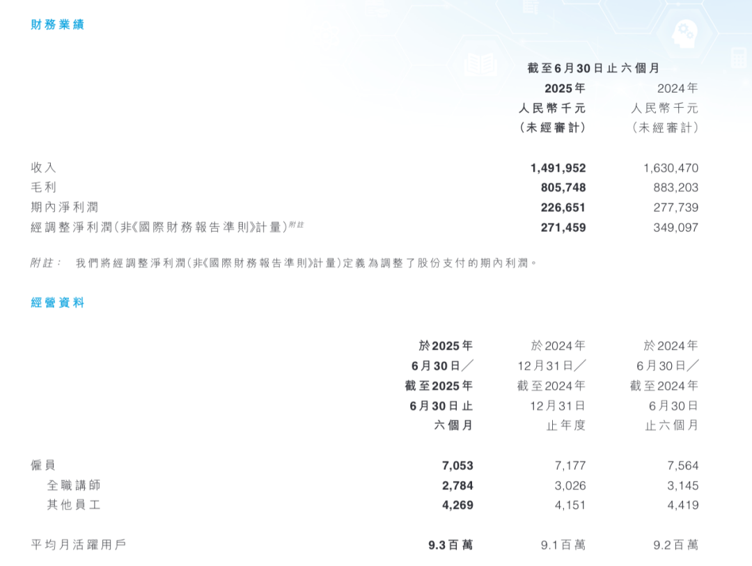 粉笔今年上半年营收14.92亿元,同比减少8.5%;净利润2.71亿元,同比减少22%。合约负债增加至2.278亿元,同比增长62%,意味着未来需要履行的预付课程义务在增多。