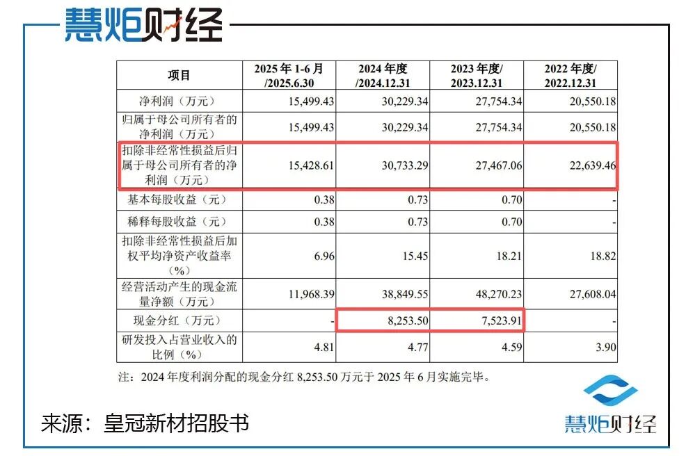 就皇冠新材IPO来说,为何要在2024年顶风分红,又是否有"过度融资"的嫌疑?