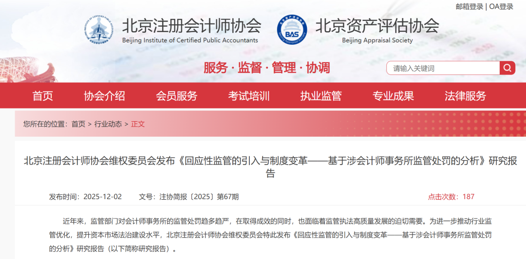 北京注册会计师协会维权委员会发布《回应性监管的引入与制度变革——基于涉会计师事务所监管处罚的分析》研究报告