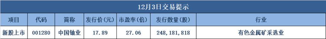 1、提示风险:12月2日晚间,又有多只大牛股因股价短期涨幅过大而提示交易风险。其中,4连板睿能科技表示,公司不从事机器人整机制造业务;4连板道明光学称,公司目前不存在AI手机相关业务;5连板海欣食品表示,公司主营业务未发生重大变化,股价短期内连续上涨,存在非理性炒作风险。此外,赛微电子表示,公司股价2025年年初至今涨幅高达252.84%,且近期换手率及成交量急剧放大,存在市场情绪过热的情形,可能存在股价大幅上涨后回落的风险。