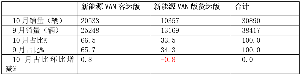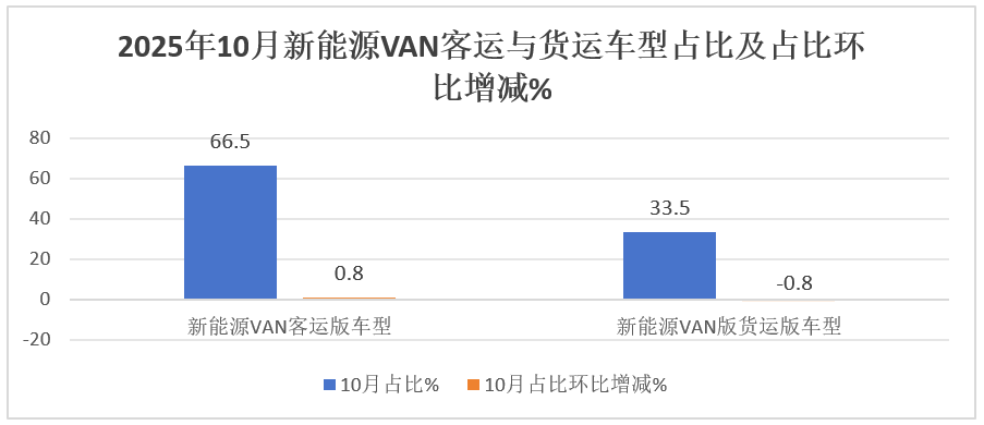 表2,根据终端上牌数据,按车型功能用途划分,2025年10月国内各类新能源VAN车型销量占比及占比环比增减统计: