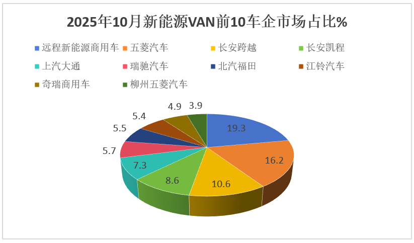 上图表显示,在2025年10月新能源VAN市场Top10车企销量中,以下特点比较明显: