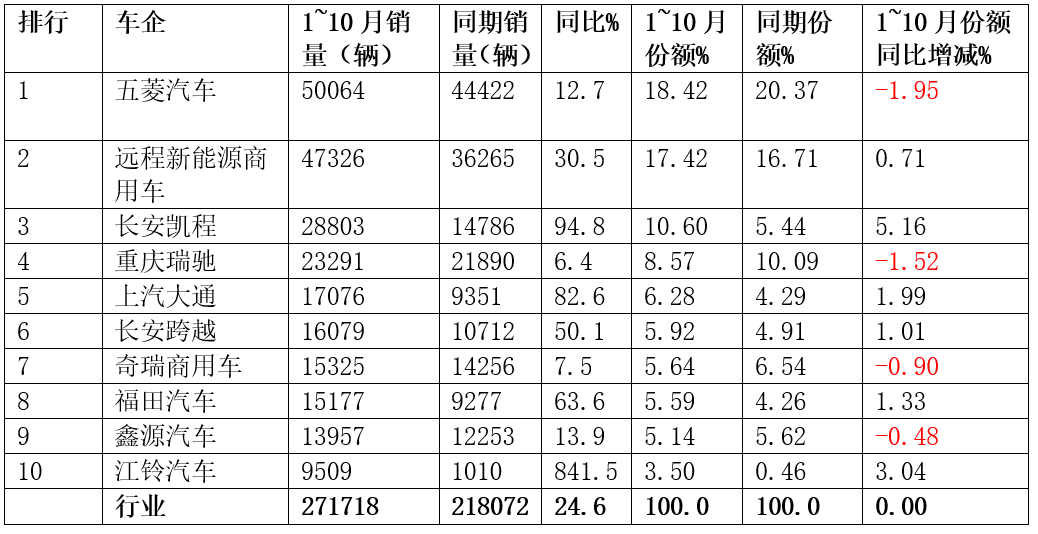 上表显示,2025年1~10月新能源VAN累计销量中以下几个特点比较明显: