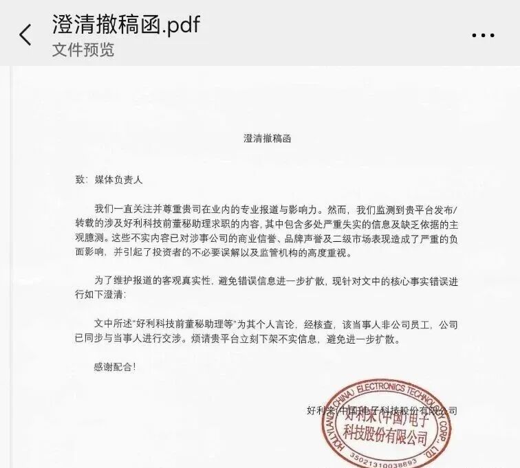 对此,好利科技已经澄清,其非公司前董秘助理,也非公司员工(前员工)。