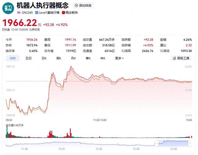 个股方面,机器人执行器概念股大涨,睿能科技、骏亚科技等10余股涨停,恒而达、华伍股份20cm涨停,日发精机涨停。下跌方面,大消费板块震荡调整,同庆楼、海欣食品跌停。