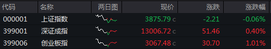 12月4日,沪指、深证成指窄幅震荡;创业板指涨超1%,早盘一度跌超0.5%。截至收盘,沪指跌0.06%,深成指涨0.4%,创业板指涨1.01%。