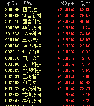 具体来看,机器人概念股走强,日发精机、巨轮智能、四川金顶、和而泰等超10股涨停。
