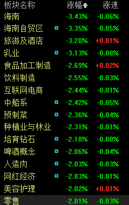 大消费板块震荡调整,同庆楼、海欣食品、中水渔业跌停。