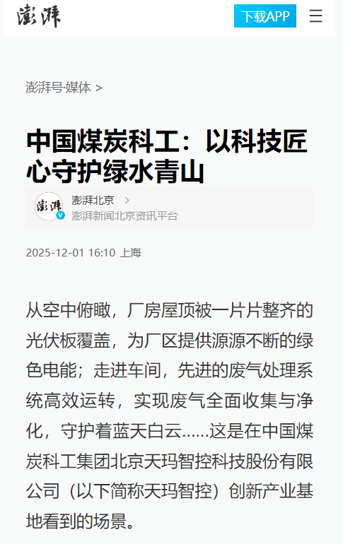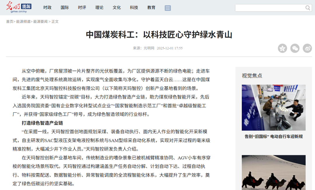 近日,光明网、澎湃新闻、中国煤炭报等主流媒体先后对“中国煤炭科工:以科技匠心守护绿水青山”进行了专题报道。以下是媒体报道内容。