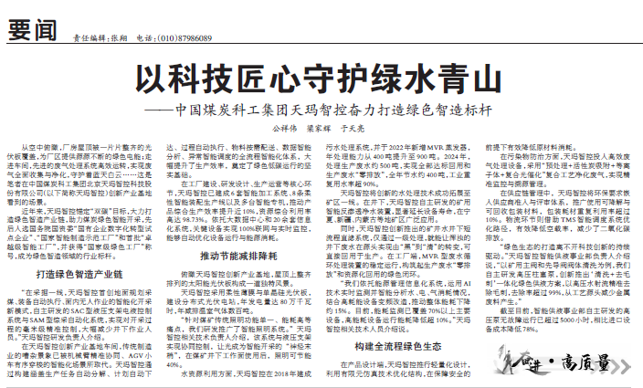 展望未来,中国煤炭科工将继续在“两山”理念指引下,通过智能制造与绿色发展的深度融合与创新实践,生动诠释了“绿水青山就是金山银山”的科学论断,为煤炭产业的高质量发展和经济社会全面绿色转型贡献央企力量。