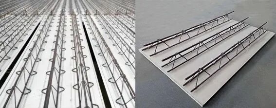 汉德邦建材焊接式钢筋桁架楼承板(左)及免拆底模钢筋桁架楼承板(右)