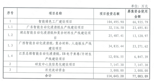 根据辅导报告中披露的规划,佳饰家原拟实施募集资金投资项目为“智能绿色工厂建设项目”,投资规模10.45亿元,其中因子项目“湖北智能自动化浸渍纸和复合材料生产线建设项目”及其他子项目中的部分投资已实施完毕,并综合考虑后续申报计划,拟对募投项目予以调整。