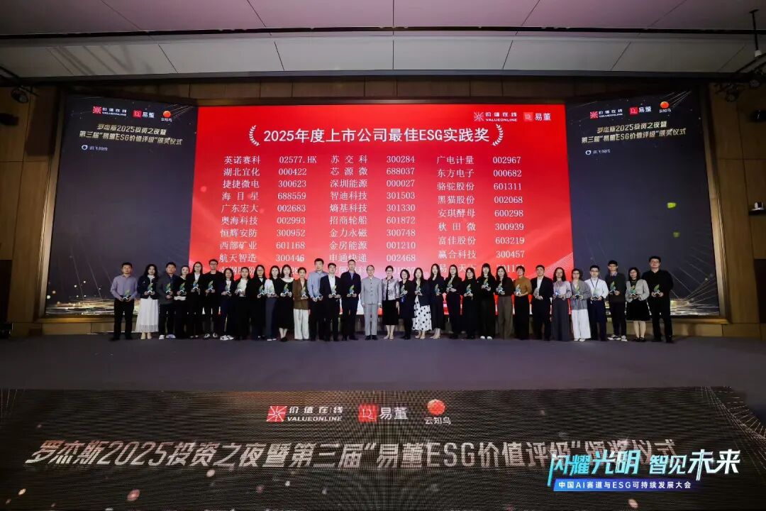 近日,在易董ESG评级“2025年度价值100榜单”评选活动中,广电计量(股票代码:002967.SZ)凭借在环境、社会与治理(ESG)领域的系统性实践与扎实成效,从众多参评企业中脱颖而出,荣获“2025年度上市公司最佳ESG实践奖”。这一荣誉充分展现了行业对公司在推动绿色发展、积极履行社会责任以及不断完善治理结构等各方面的努力与成果的认可。