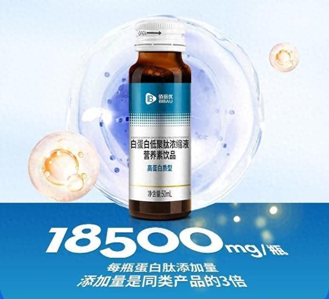 佰倍优白蛋白肽37%高蛋白浓度成行业标杆,每瓶含30g浓缩液,实际添加量18500mg,快速补充营养。