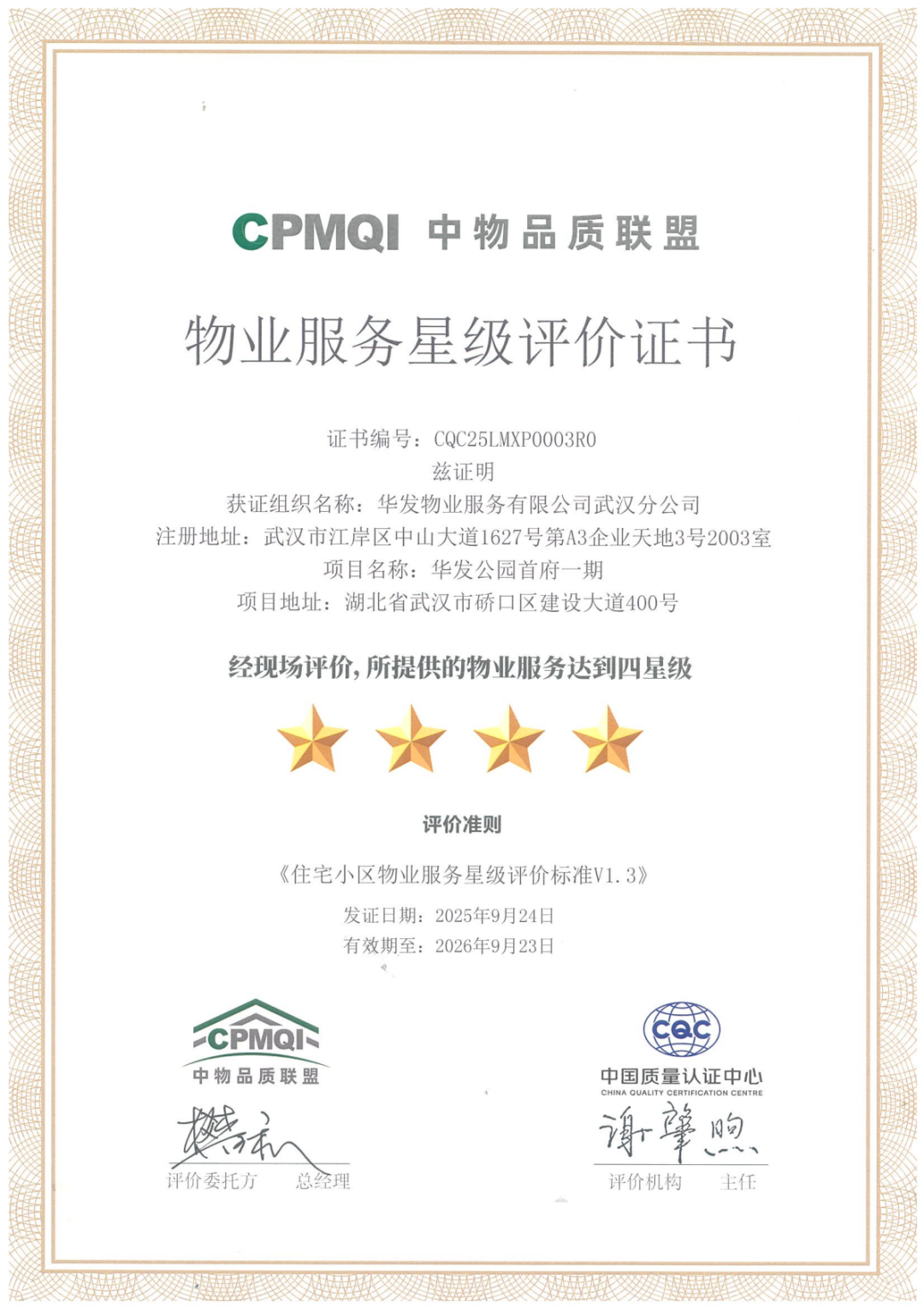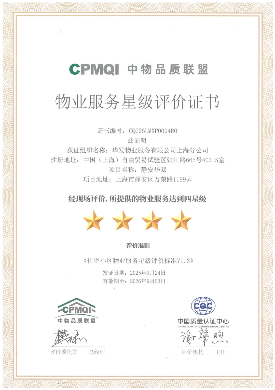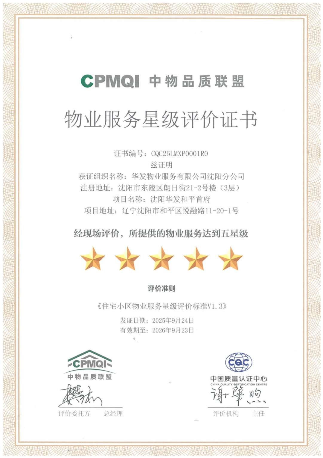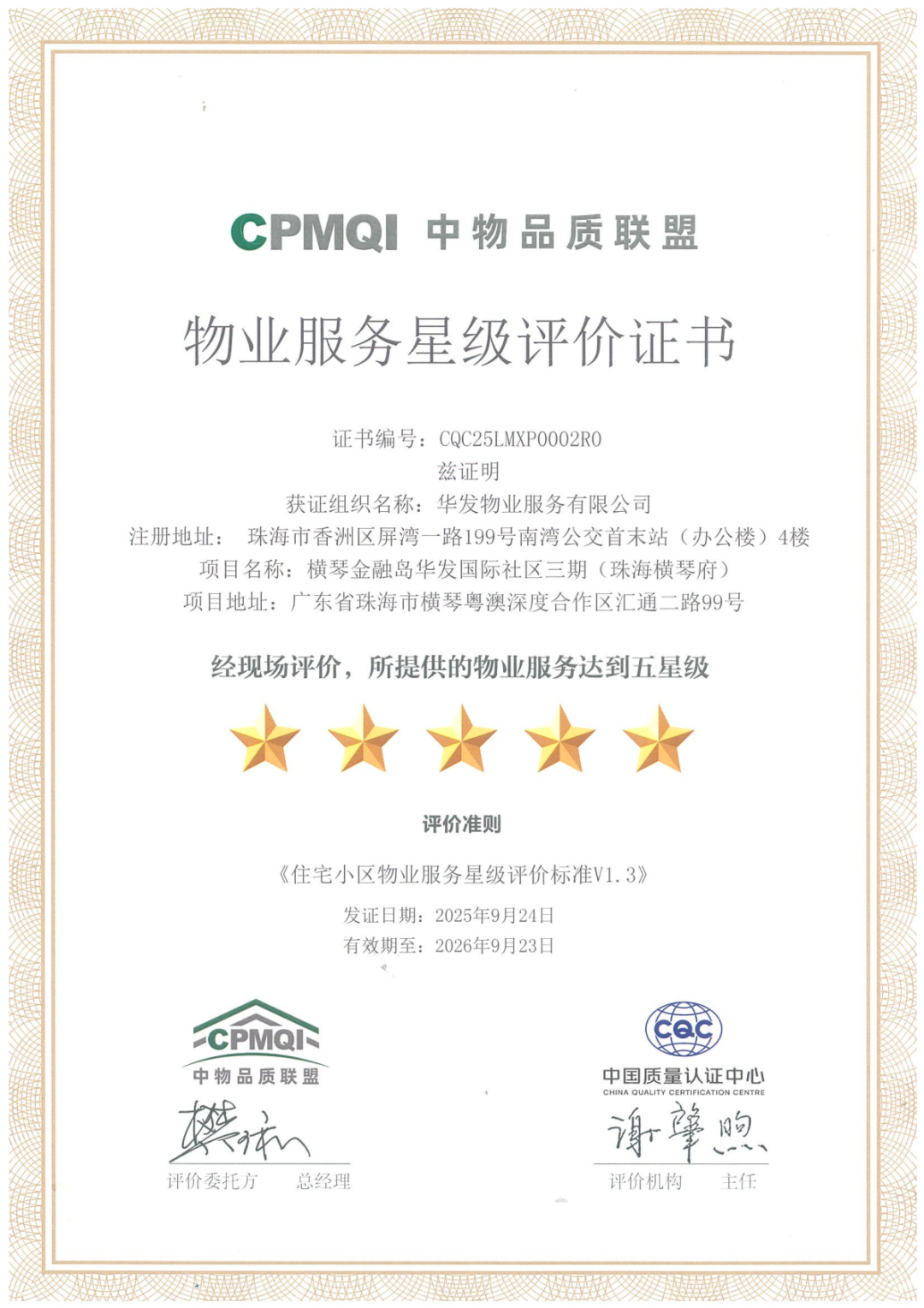 本次“质量月”华发物业通过“品质焕新计划”为业主提供更舒适的居住环境,并引入中物品质联盟物业服务星级评价机制。珠海横琴府、上海静安府等四个项目成功获评服务五星级、四星级项目,后续该评价机制将在华发各项目推广实施。未来,华发的服务将像星级酒店一样可衡量、可感知。