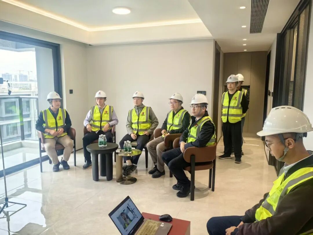 现场观摩活动同样赢得广泛好评,并将在“质量月”结束后作为固定项目持续推进。在上海观澜半岛线上观摩会中,近200名工程师通过云端相聚,围绕工法样板形式与工艺要点进行了深入交流,重点探讨了针对石材、瓷砖、金属线等不同材质在软装收口处理中的难点和技巧等细节提升方案。优秀案例展示、现场连麦互动、评论区热烈的讨论与交流为全国各公司及项目的质量提升之路提供了有力的技术指导与行动指南。
