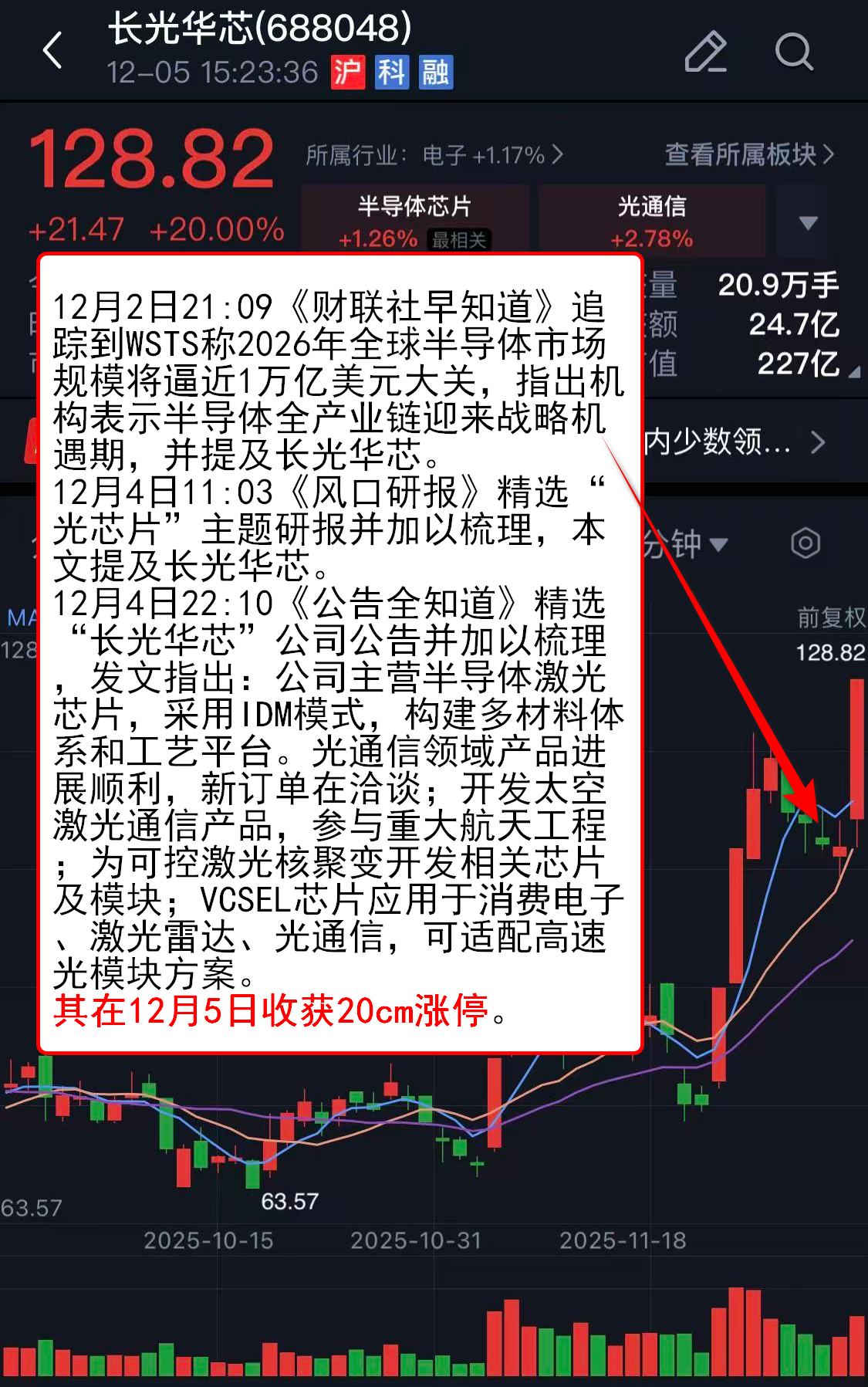 其在12月5日收获20cm涨停。