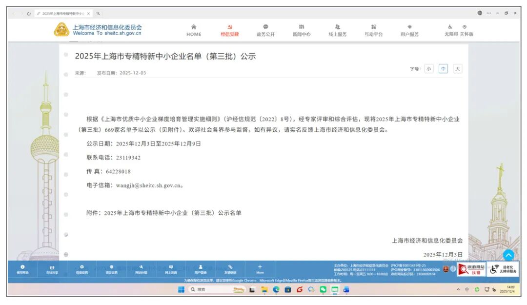12月3日,2025年上海市第三批专精特新中小企业名单发布,中曼集团凭借突出的专业技术水平、创新能力、数字化能力顺利通过认定,这标志着公司在专业化、精细化、特色化、新颖化等四方面的综合实力获得社会广泛认可。