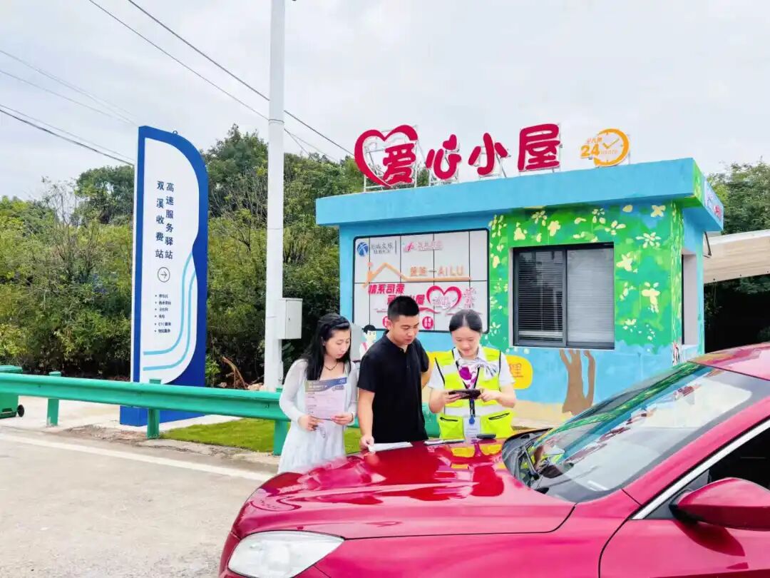收费站作为发行“主战场”,收费员们化身“宣传大使+服务专员”,把ETC推广融入日常服务的每一个细节。广场上,他们抢抓司乘缴费的黄金间隙,“一对一”精准宣讲——向货运司机细数“通行95折+发票即时打”的实惠,为客车车主详解“不停车通行+高速优先”的便捷;收费窗口、爱心小屋内,“ETC一站式办理点”整齐亮相,“5分钟快办”的醒目标识格外亮眼,从信息核对到设备激活的全流程闭环服务,让司乘由衷赞叹“比加油还省事”。LED屏滚动播报、车道海报醒目展示、服务区折页精准发放,多维宣传矩阵让ETC便民优势深入人心。