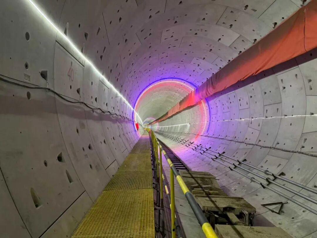 隧道股份上海路桥依托智能化管理手段,针对超深基坑和盾构长距离掘进等难题,以“盾构数字化管控系统”为智能中枢,集成实时监测、风险预警与自动调控功能,根据盾构机姿态、地表沉降等关键指标,动态调整施工参数,克服了盾构穿越河道、高架、重要管线及密集建(构)筑物等风险挑战,高质量完成盾构掘进任务。在隧道管片拼装环节,项目团队优化了沟槽防水设计,采用精细化拼装工艺,提升接缝密闭性与耐久性。同时,严格测量复核,规范管片选型与排版,精细控制注浆过程,全程分析监测数据,全力确保成型隧道区间“无渗漏、无变形”。