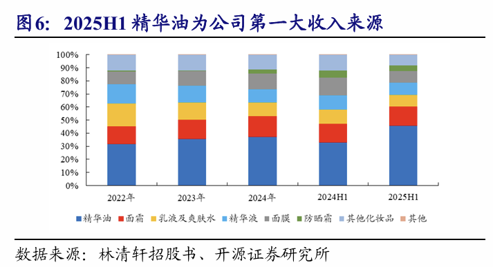 彩妆护肤协同发展,香氛开拓品类边界,高端渠道持续发力。彩妆端,公司以彩妆为基本盘,2025H1小金扇粉饼和鱼子气垫均实现超2亿元销售额,延续高端国货彩妆龙头优势;此外公司布局香水赛道,上新“国韵凝香”和“闻道东方”系列,已实现1141万元销售额。护肤端,鱼子面膜零售额超6亿元(占护肤近60%),黑霜超2亿元,大单品持续发力;同时新品逐步落地,黑金焕颜鎏光精华水超1600万元。线下端,2025H1自营及经销专柜分别为405/32个,覆盖超120个城市,复购率达30.3%(+1.6pct),入驻北京SKP、重庆星光68百货等超高端渠道,杭州开设首家品牌形象旗舰店,强化高端国妆定位并助于同店提升。线上端,2025年618大促销售额增长超70%,并在好物节夺得抖音彩妆类目榜首,线上通过加强营销活动持续拓新,同时老客复购率增加,未来有望维持较快增速。