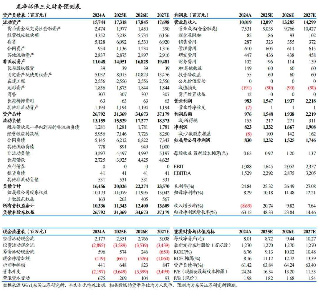 电力&非电共振,大气污染治理市场稳健释放。除了财政资金支持外,电力与非电持续释放的新建、改造、更新需求,驱动大气污染治理市场稳健释放。火电作为新型电力系统转型过程中的压舱石,新增装机仍有支撑,煤电往清洁降碳、高效调节、智能运行等方向发展,推动存量机组改造提升。非电行业推动减污降碳深度协同,钢铁、水泥、焦化等超低排放改造进行中。公司作为全球最大的大气环保装备研发制造商,将持续受益于市场释放。2025年前三季度公司新增环保设备工程合同76.26亿元(电力占61.51%,非电占38.49%),同比增长1.1%,第三季度新增环保设备工程合同22.56亿元,单季度同比增长12%。得益于新一轮煤电项目建设和现役机组的环保改造需求,公司持续巩固大气污染治理领域龙头地位。截至20250930,公司在手订单197亿,较20250630下降3亿,较2024年底增加10亿,在手订单充足,收入确认加速。