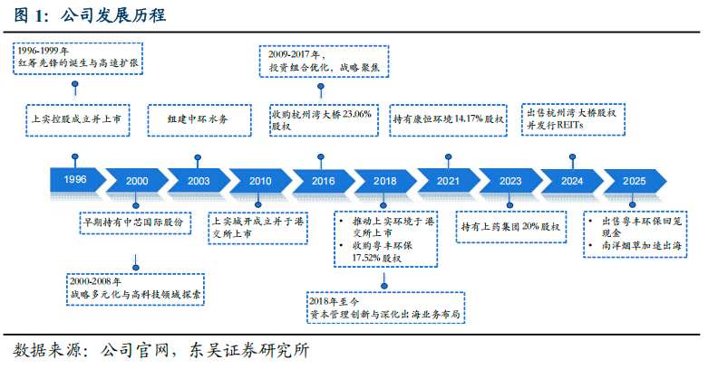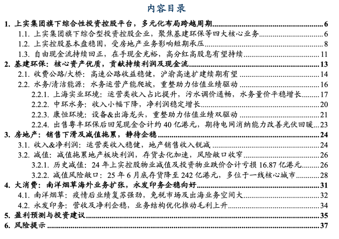 (4)2018年至今,资本管理创新与深化出海业务布局:21年收购康恒环境14.17%股权,24年出售杭州湾大桥股权并发行Reits,加速基建资产变现并获取投资回报;25年5月出售粤丰环保回笼现金;南洋烟草加速出海等。历经近30年发展,上实控股逐渐形成基建环保、房地产、消费品、大健康四大业务版图,是上实集团旗下最大的综合性投资控股企业。