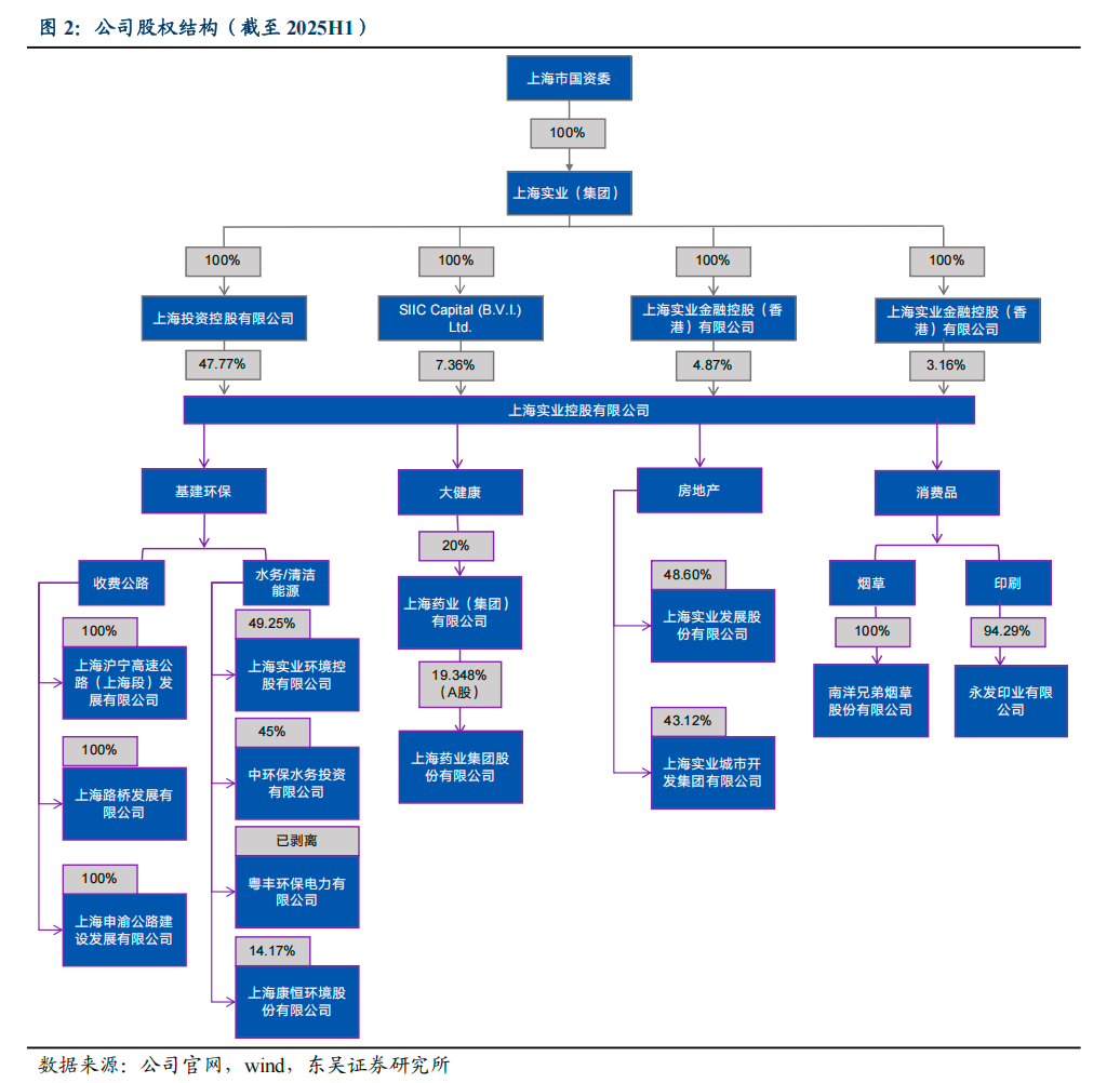 实控人系上海国资委,通过上实集团合计持有公司63.16%股权。截至2025年6月30日,公司实控人为上海国资委,其全资控股的上实集团合计持有上海实业控股的63.16%的股份。上实控股旗下业务多元,涵盖四大核心业务,截至2025H1末: