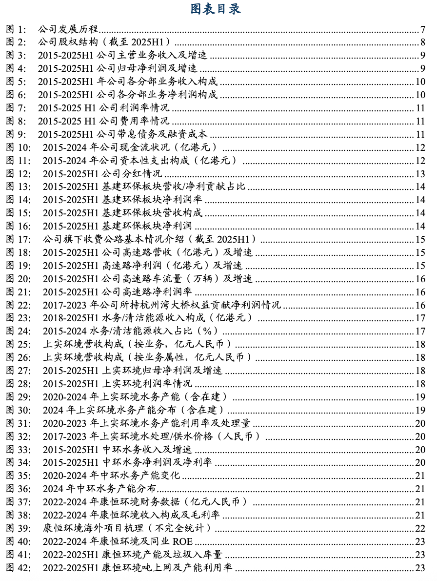 基建环保:(1)收费公路/大桥:持有G2京沪高速上海段、G60沪昆高速上海段、G50沪渝高速上海段三条高速公路项目公司的100%股权;(2)水务/清洁能源:水务平台包括新港两地上市的上实环境(BHKJSGX; 0807 HKSE,持股49.25%)、中环水务(持股45%),垃圾焚烧平台包括康恒环境(持股14.17%)。此外,公司2024年底持有粤丰环保19.48%的股权,于2025年5月出售。