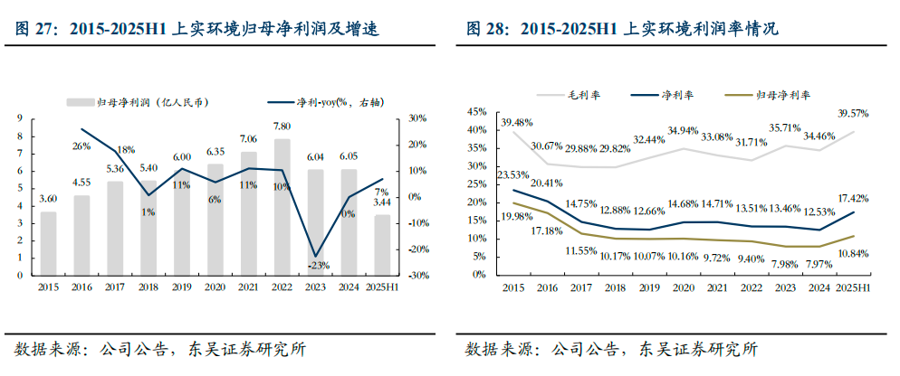 2025H1提质增效显著,归母净利及利润率边际回升。2015-2022年,上实环境归母净利润从3.60增长至7.80亿元人民币,年复合增长率为6.05%,2023年归母净利润为6.04亿元人民币,同比减少22.58%,一方面系建设收入降低致使公司净利润减少,另一方面系少数股东损益所占的净利润增加,2025H1归母净利润3.44亿元人民币,同比增长7.10%,主要系融资结构优化,财务费用同比下降12.5%。2020-2024年,上实环境毛利率整体稳定在31.71%-35.71%之间,受收入结构改变等因素,净利率、归母净利率从2020年的14.68%/10.16%下滑至2024年的12.53%/7.97%,2024年同比变动-0.94/-0.01pct。2025H1利润率边际回升,在建造收入下滑的背景下,展现出较强的经营韧性。随着上实环境步入稳定运营阶段,整体利润率更加稳健,提质增效仍具空间,归母净利润亦有望同步增长。