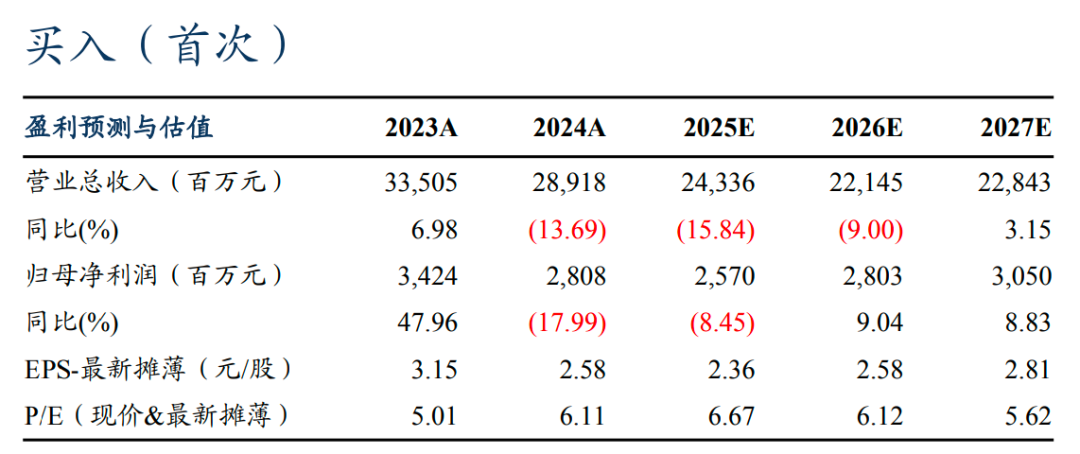 综上,公司基建环保业务稳健,消费出海贡献增量,房地产风险收窄,现金流充裕可保障持续高分红,即使考虑控股型企业折价,结合当前低估值、高股息状况,公司估值存较大提升空间。首次覆盖,给予“买入”评级。(估值日期:2025/12/3)。