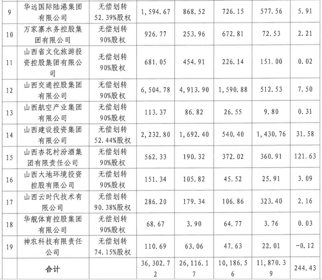 (数据来源:山西省国有资本运营有限公司关于所持省属企业部分股权划转至省国资委有关事宜的公告)