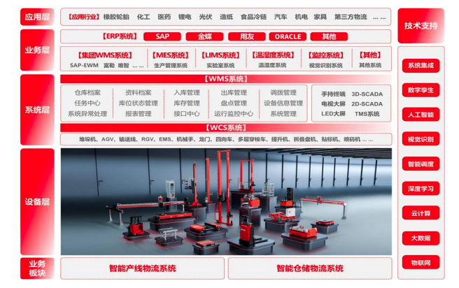 同时,该公司自主研发的AGV、RGV、堆垛机、输送机、EMS系统、龙门机械手等智能物流装备以及WMS(仓储管理系统)、WCS(仓库控制系统)、RCS(机器人控制系统)等软件系统,与智能物流系统配合,形成了覆盖“入厂-生产-仓储-发运”全流程的数字化解决方案。