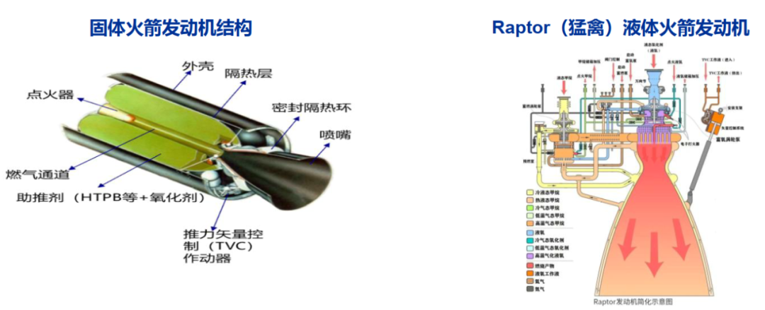 固体发动机以固化燃料为动力,结构含燃烧室、喷管等,可长期储存、使用维护便捷、发射灵活;液体发动机采用液态推进剂(如液态氢),搭配氧化剂燃烧,运载能力强、比冲更高。