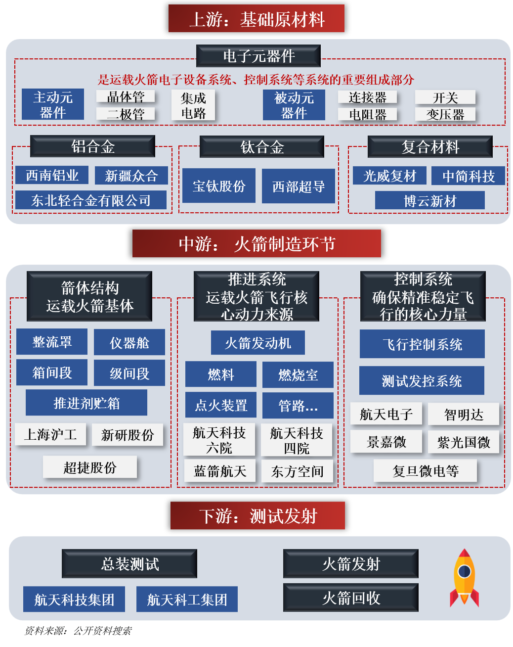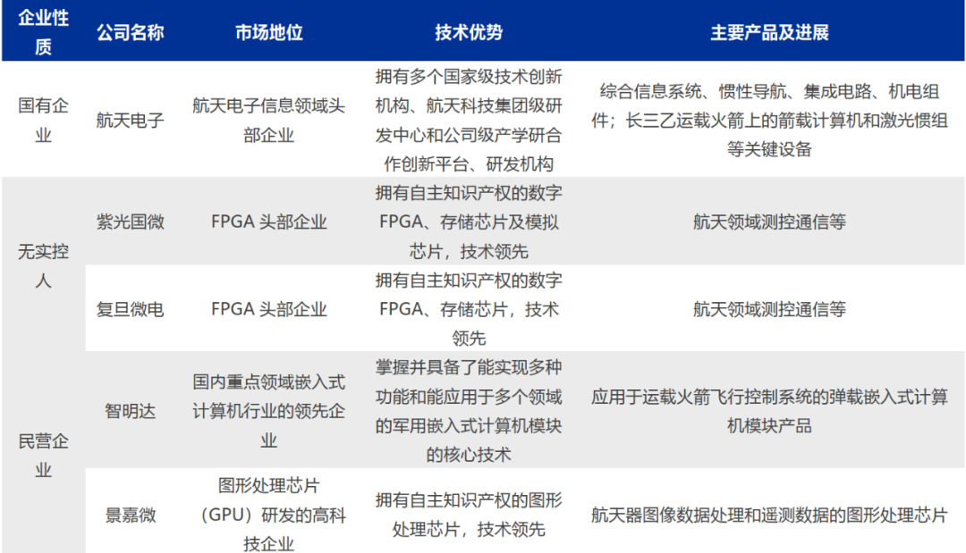 航天电子作为航天电子信息领域头部企业,研制的航天遥测测控设备、卫星导航产品达到国际先进水平,支撑历次卫星与飞船发射;智明达专注飞行控制系统嵌入式计算机模块生产,为火箭提供核心硬件支持。